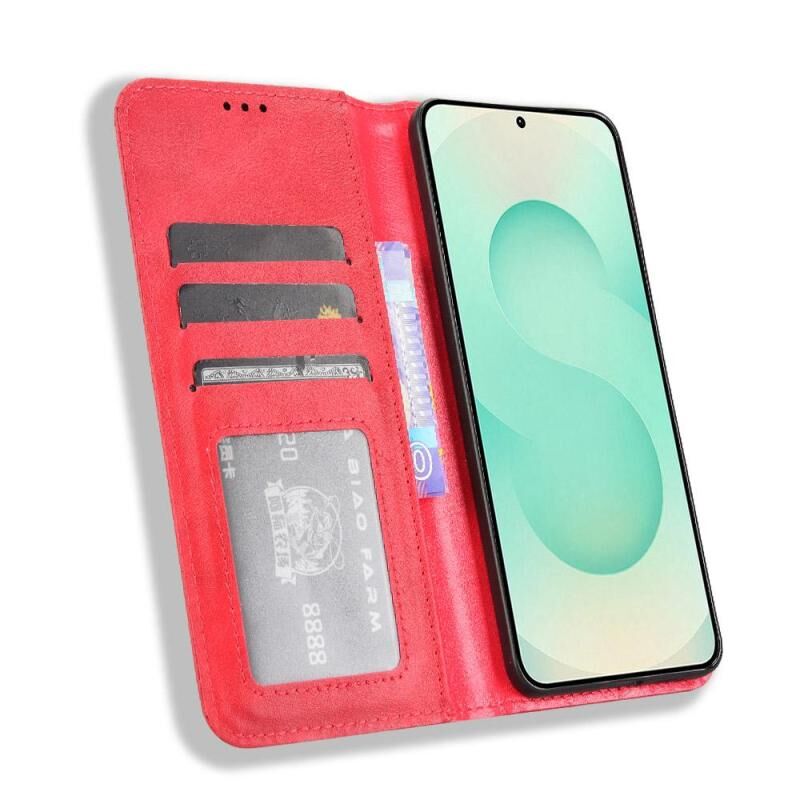 Θήκη τηλεφώνου Samsung Galaxy S25 Edge 5G με μαγνητικό κούμπωμα, δέρμα με ανάγλυφη υφή retro (Κόκκινο)