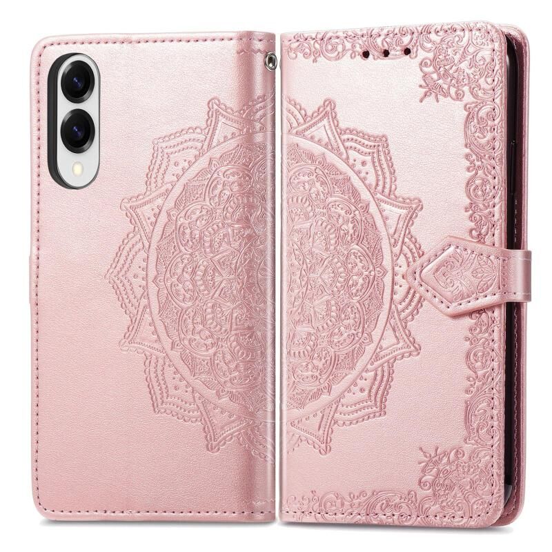 Θήκη τηλεφώνου Samsung Galaxy S25 Edge 5G από δέρμα με ανάγλυφο σχέδιο μανταλάς (Χρυσό ροζ)