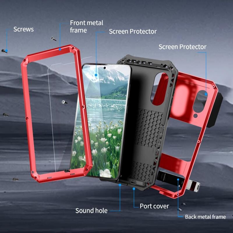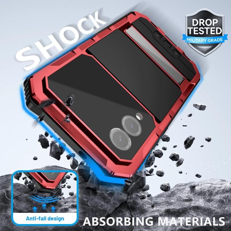1. Μέταλλο + σιλικόνη + σκληρυμένο γυαλί, σχεδιασμός πλήρους κάλυψης 360 μοιρών επαγγελματικής ποιότητας.