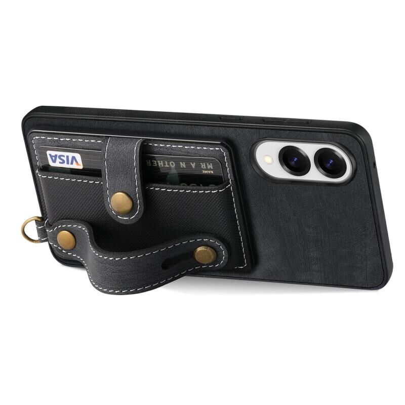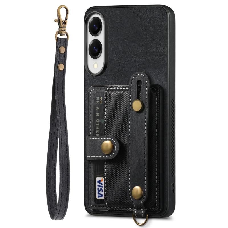 Θήκη κινητού Samsung Galaxy S25 Edge 5G, δερμάτινη θήκη πορτοφολιού με λουρί καρπού σε ρετρό σχέδιο (Καφέ)
