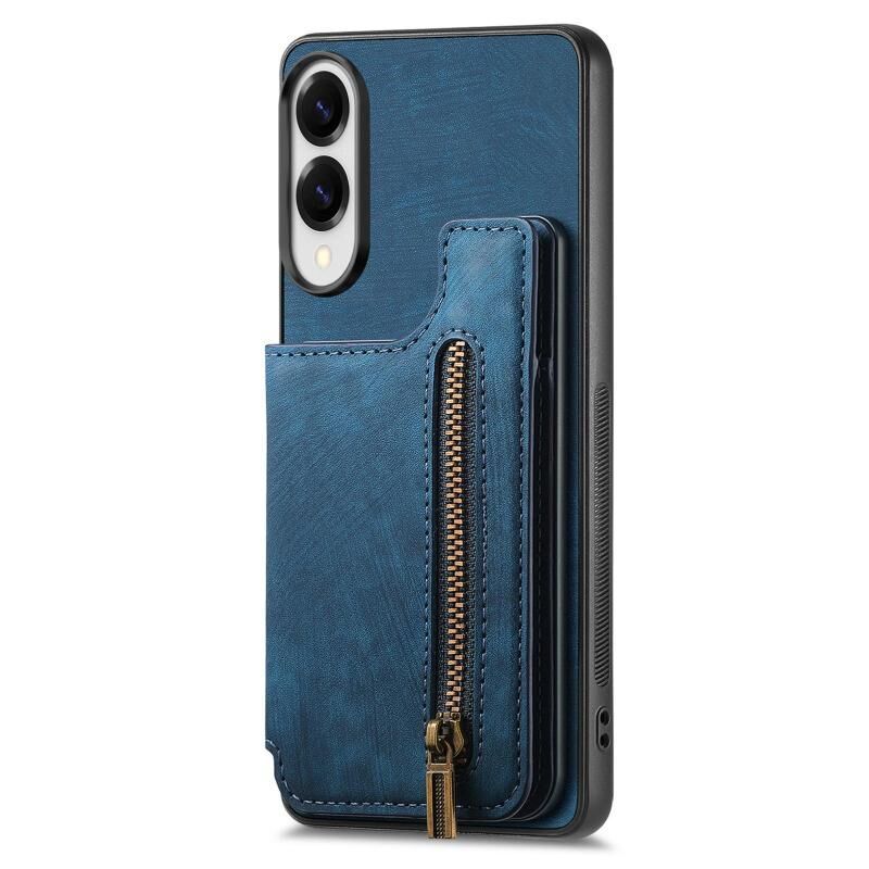 Θήκη κινητού τηλεφώνου Samsung Galaxy S25 Edge 5G, δερμάτινη, ρετρό, με φερμουάρ και θήκη πορτοφολιού (Ροζ)