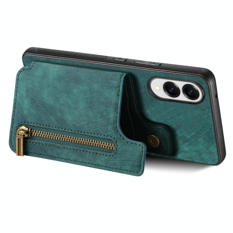 Θήκη κινητού τηλεφώνου Samsung Galaxy S25 Edge 5G, δερμάτινη, ρετρό, με φερμουάρ και θήκη πορτοφολιού (Ροζ)