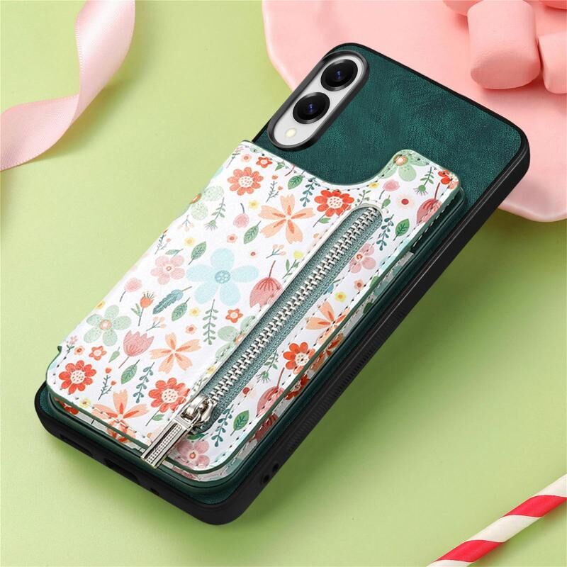 Θήκη κινητού τηλεφώνου Samsung Galaxy S25 Edge 5G με σχέδιο vintage, φερμουάρ και θήκη πορτοφολιού (Ροζ)