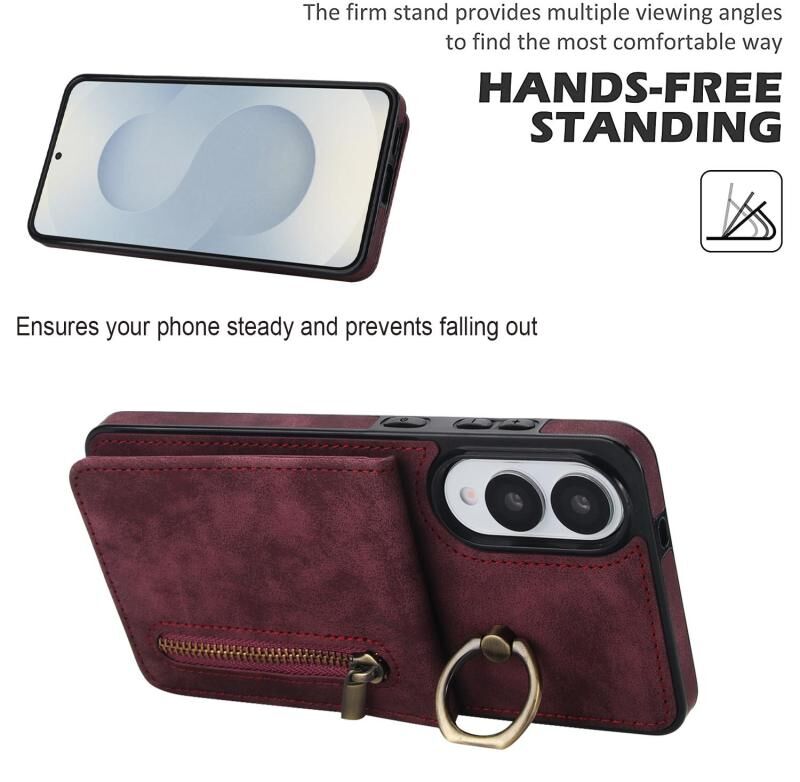 Θήκη κινητού τηλεφώνου Samsung Galaxy S25 Edge 5G με ρετρό δακτύλιο και θήκη καρτών RFID με φερμουάρ (Ροζ)
