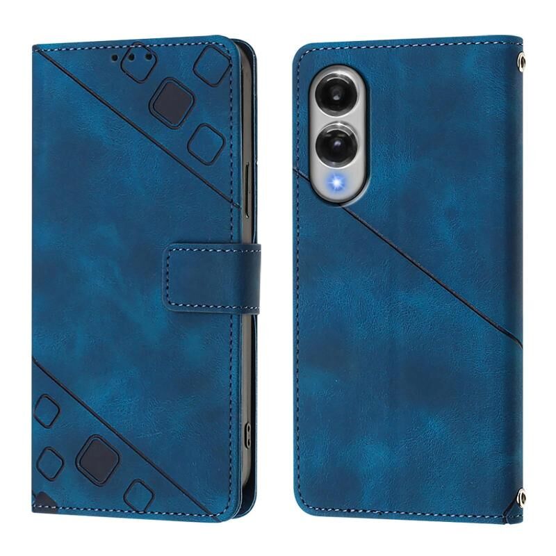 Για Samsung Galaxy S25 Edge 5G Skin-feel ανάγλυφη δερμάτινη θήκη τηλεφώνου (μπλε)