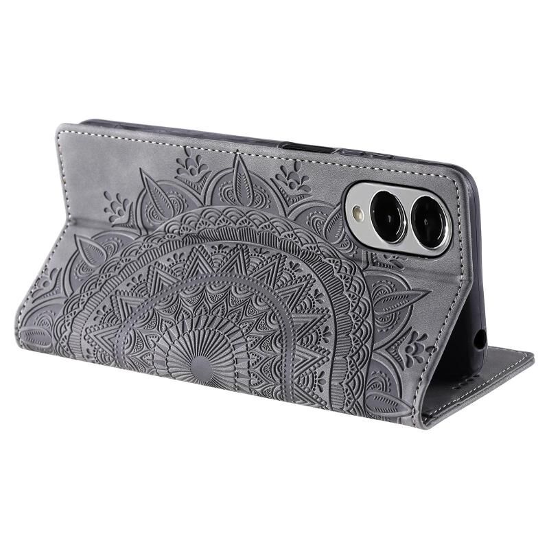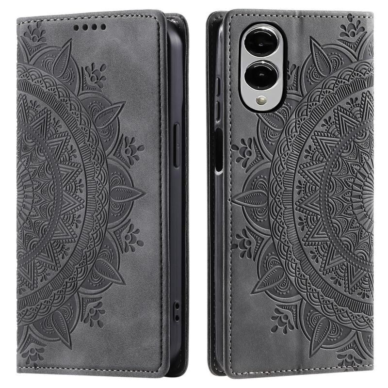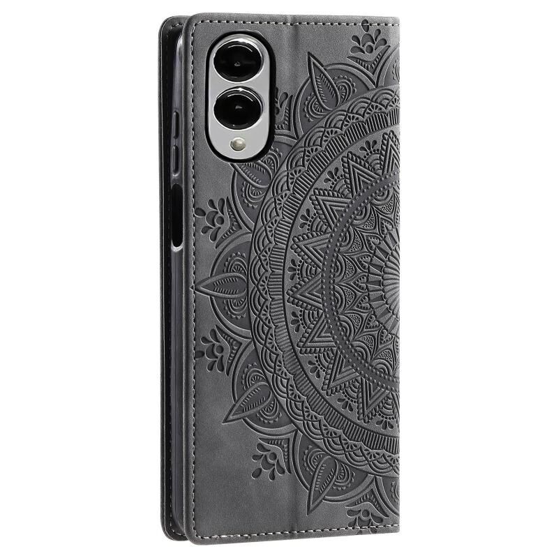 Θήκη τηλεφώνου Samsung Galaxy S25 Edge 5G από δέρμα με μαγνητικό κούμπωμα και ανάγλυφο σχέδιο Totem (Γκρι)