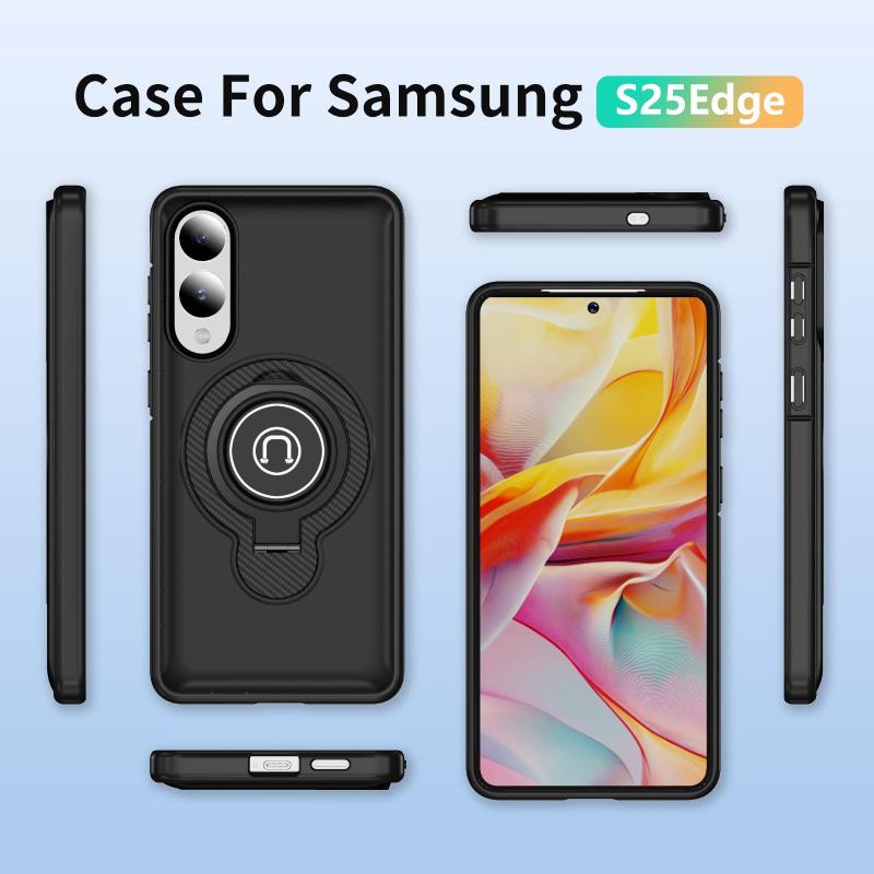 For Samsung Galaxy S25 Edge 5G TPU Hybrid PC Magnetic Holder Phone Case(Black)