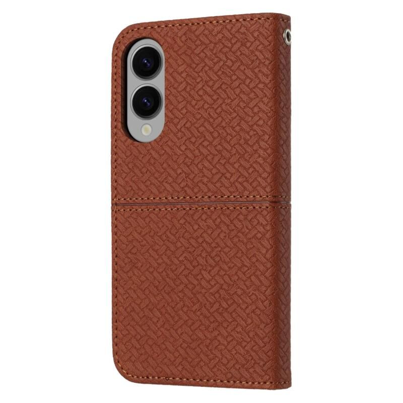 Για Samsung Galaxy S25 Edge 5G υφαντά υφή ραφή μαγνητική δερμάτινη θήκη τηλεφώνου (καφέ)
