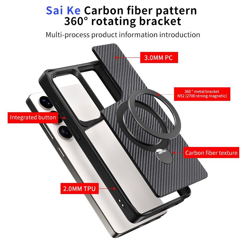 Θήκη τηλεφώνου με υφή ανθρακονήματος 360 MagSafe για Samsung Galaxy S25 / S24 5G (Μωβ)