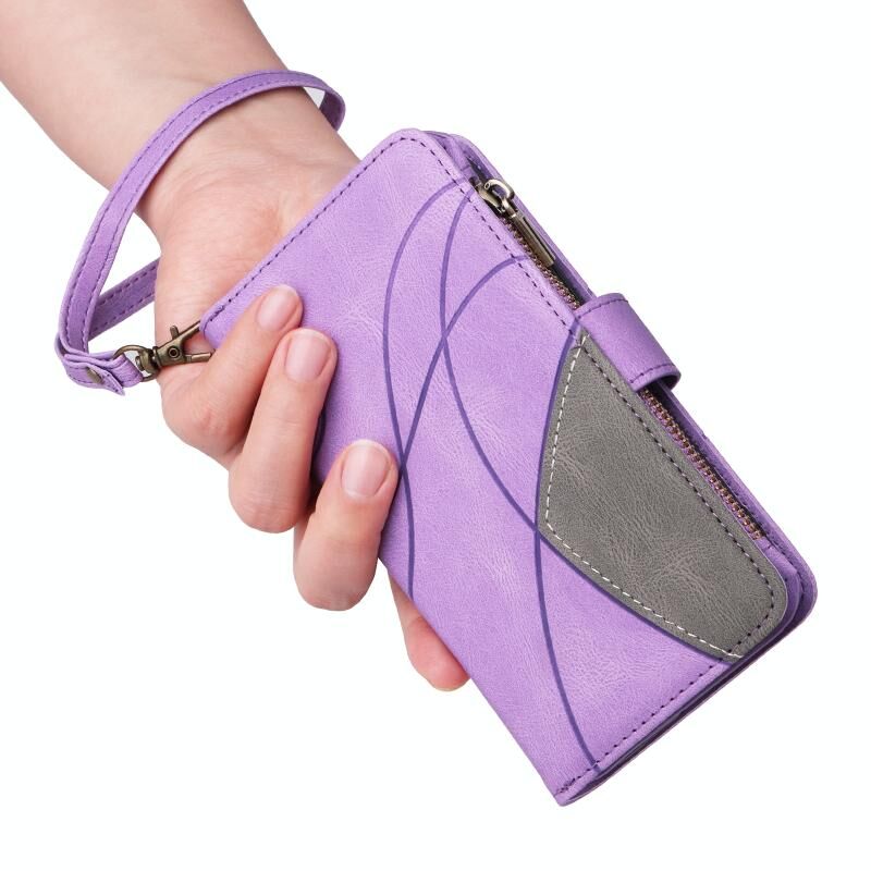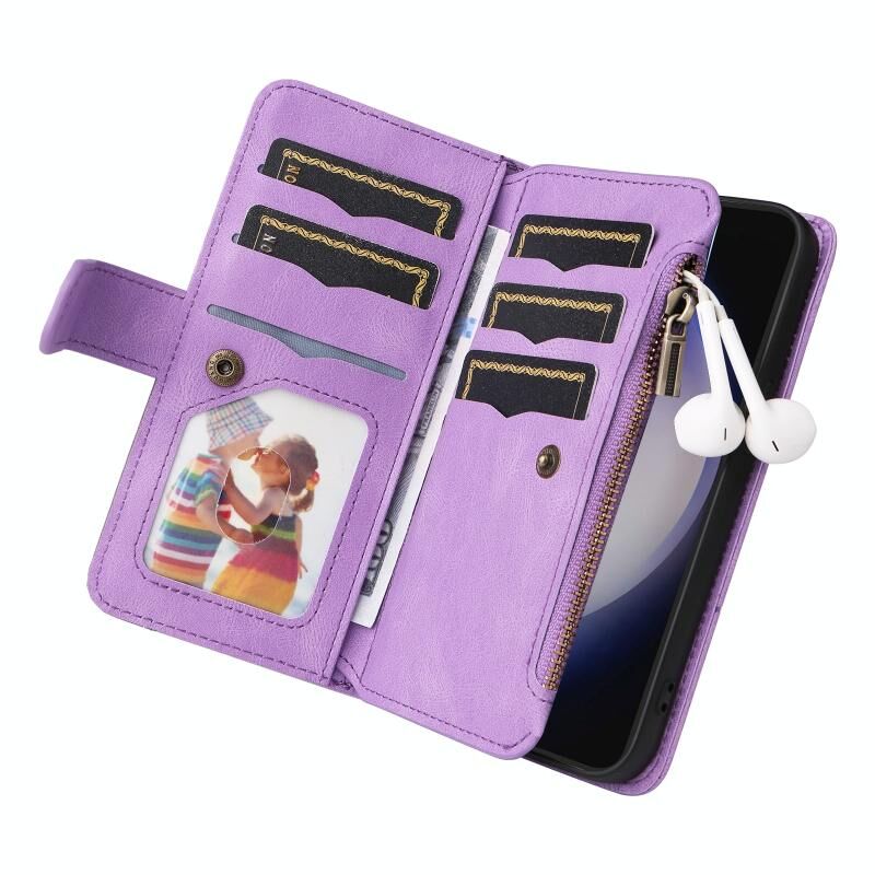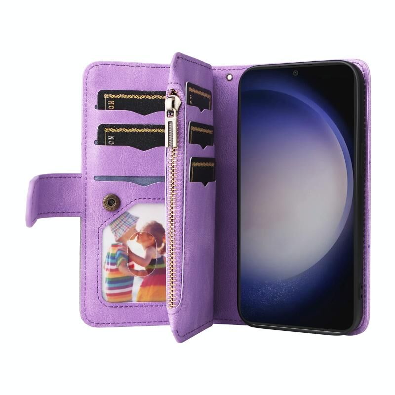 Για Samsung Galaxy S25 + / S24 + 5G Dual-χρώμα 9 υποδοχές καρτών φερμουάρ πορτοφόλι δερμάτινη θήκη τηλεφώνου (Μωβ)