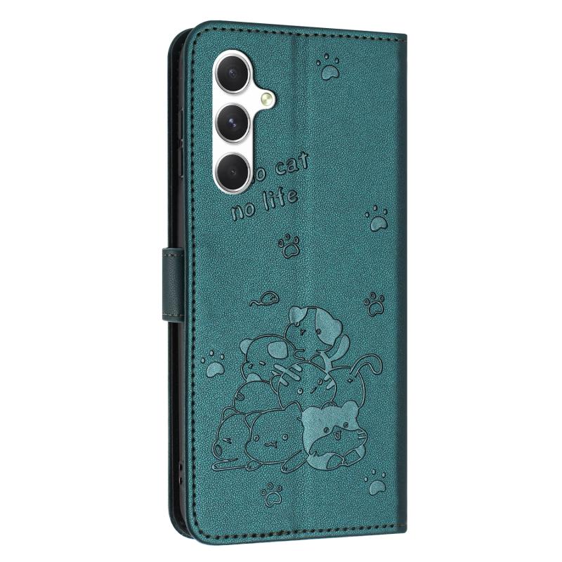 For Samsung Galaxy S25 / S24 5G Embossed Kitten Phone Leather Case with Lanyard(Dark Green)
