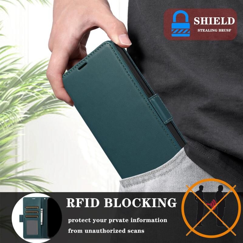 Θήκη τηλεφώνου δερμάτινη με πλευρική αγκράφα, αντι-κλοπής RFID για Samsung Galaxy S25+ / S24+ 5G (πράσινο)