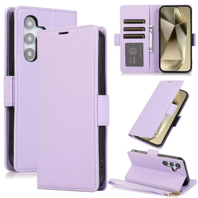 For Samsung Galaxy S25 / S24 5G Side Buckle RFID Anti-theft Leather Phone Case(Light Purple)