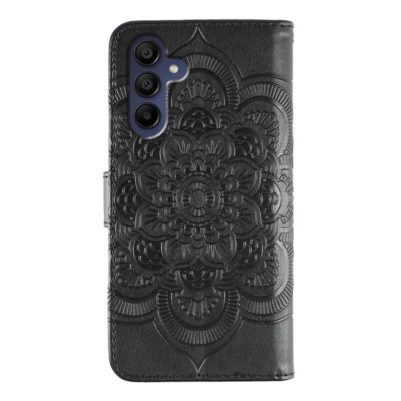 Θήκη δερμάτινη για Samsung Galaxy S25+ / S24+ 5G με ανάγλυφο σχέδιο Sun Mandala (Μαύρο)