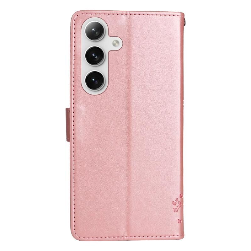 Θήκη τηλεφώνου Samsung Galaxy S25 / S24 5G, δερμάτινη, τύπου flip με ανάγλυφο σχέδιο δέντρου & γάτας (Πράσινη)