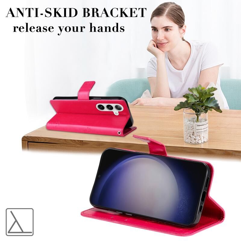 Θήκη τηλεφώνου Samsung Galaxy S25 / S24 5G, δερμάτινη, τύπου flip με ανάγλυφο σχέδιο δέντρου & γάτας (Πράσινη)