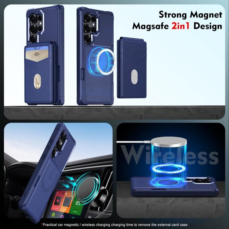 Θήκη κινητού Samsung Galaxy S25 Ultra 5G 2-σε-1 Μαγνητικό Πορτοφόλι MagSafe Δερμάτινη Πλάτης (Μπλε)