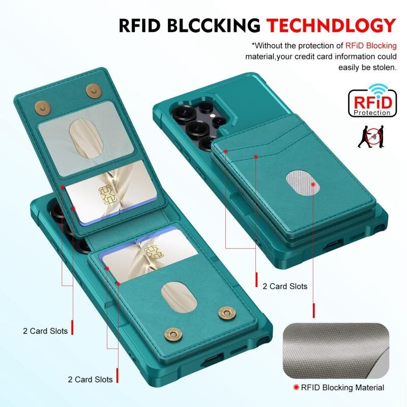 4. Λειτουργία πορτοφολιού με θήκη για κάρτες: Το εσωτερικό πτερύγιο περιλαμβάνει υποδοχές για την αποθήκευση τραπεζικών καρτών, ταυτοτήτων και μετρητών, καθιστώντας το βολικό για καθημερινή χρήση.