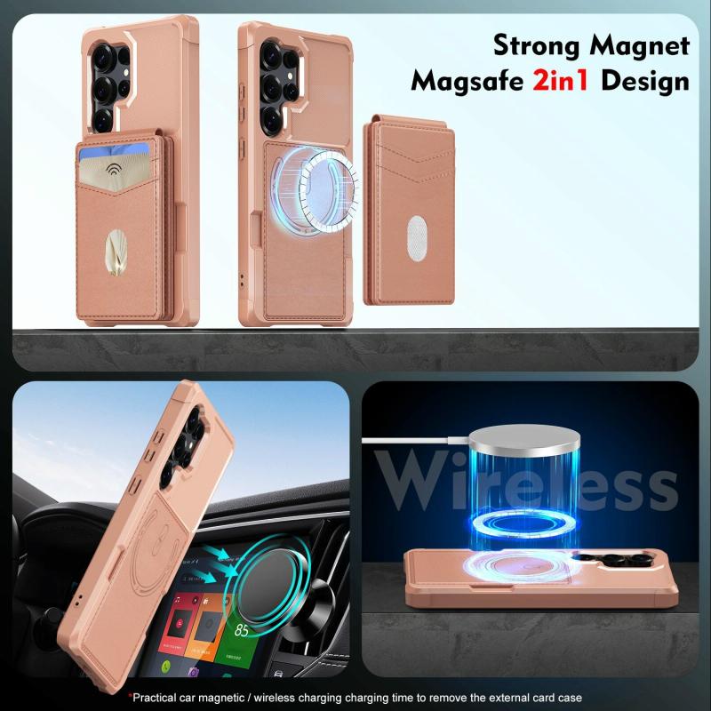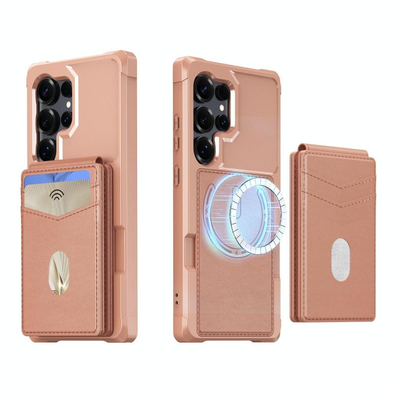 Για Samsung Galaxy S25 Ultra 5G Δερμάτινη Θήκη Wallet με MagSafe 2 σε 1 (Ροζ)