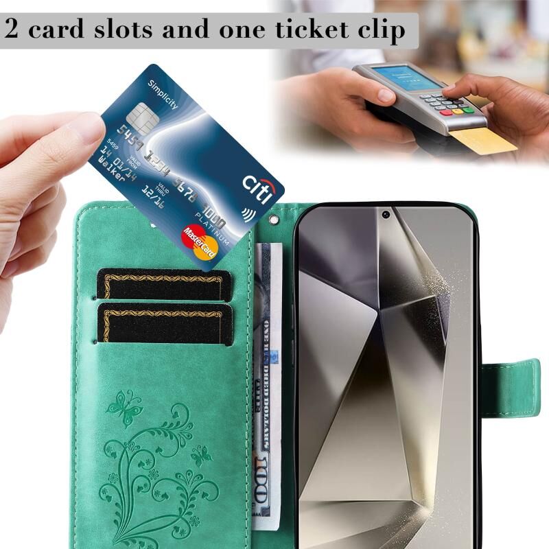 Θήκη τηλεφώνου Samsung Galaxy S25 Ultra 5G, δερμάτινη, με ανάγλυφο σχέδιο πεταλούδας 3D (πράσινο)