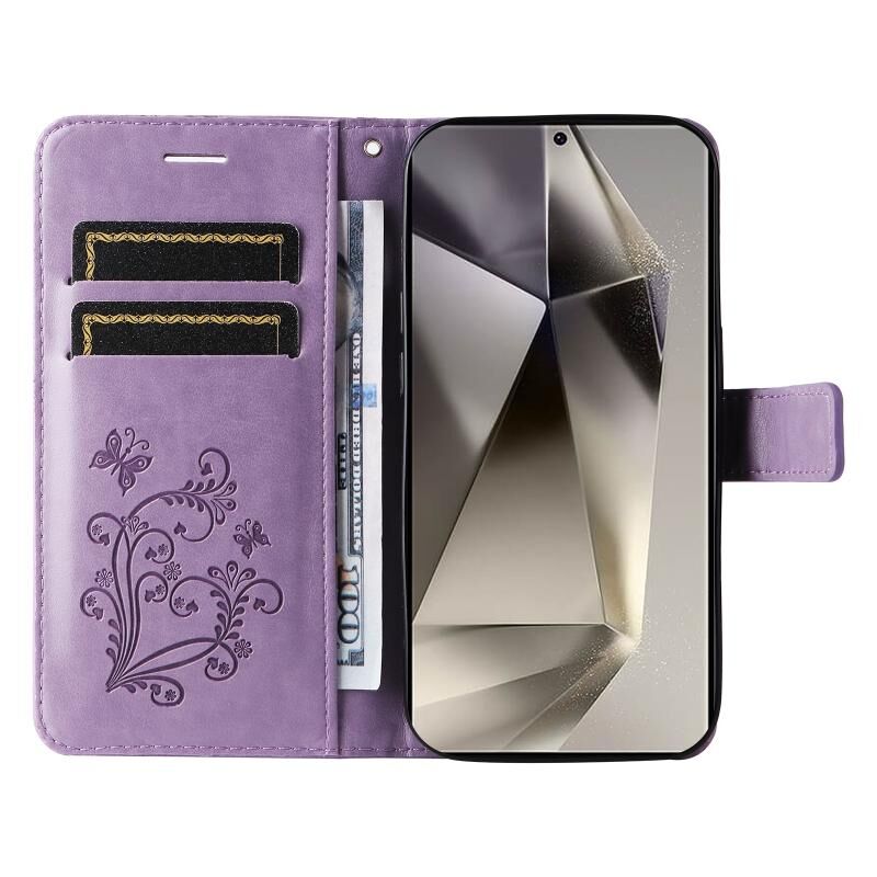 Θήκη τηλεφώνου Samsung Galaxy S25 Ultra 5G, δερμάτινη, με ανάγλυφο σχέδιο πεταλούδας 3D (Μωβ)