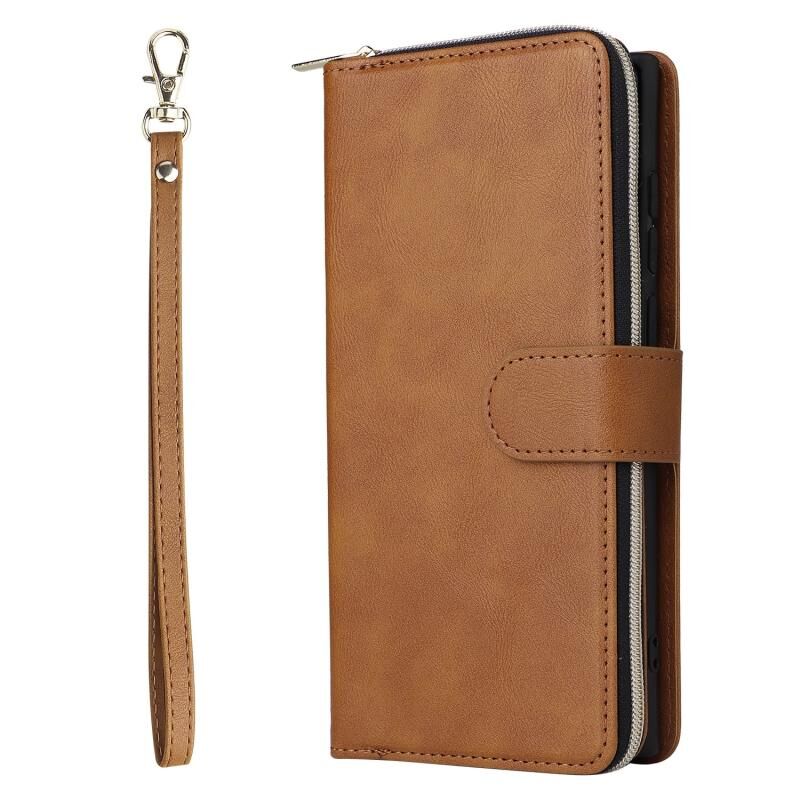 Για Samsung Galaxy S25 Ultra 5G 9-κάρτα υποδοχές φερμουάρ πορτοφόλι τσάντα δέρμα τηλέφωνο υπόθεση (Καφέ)