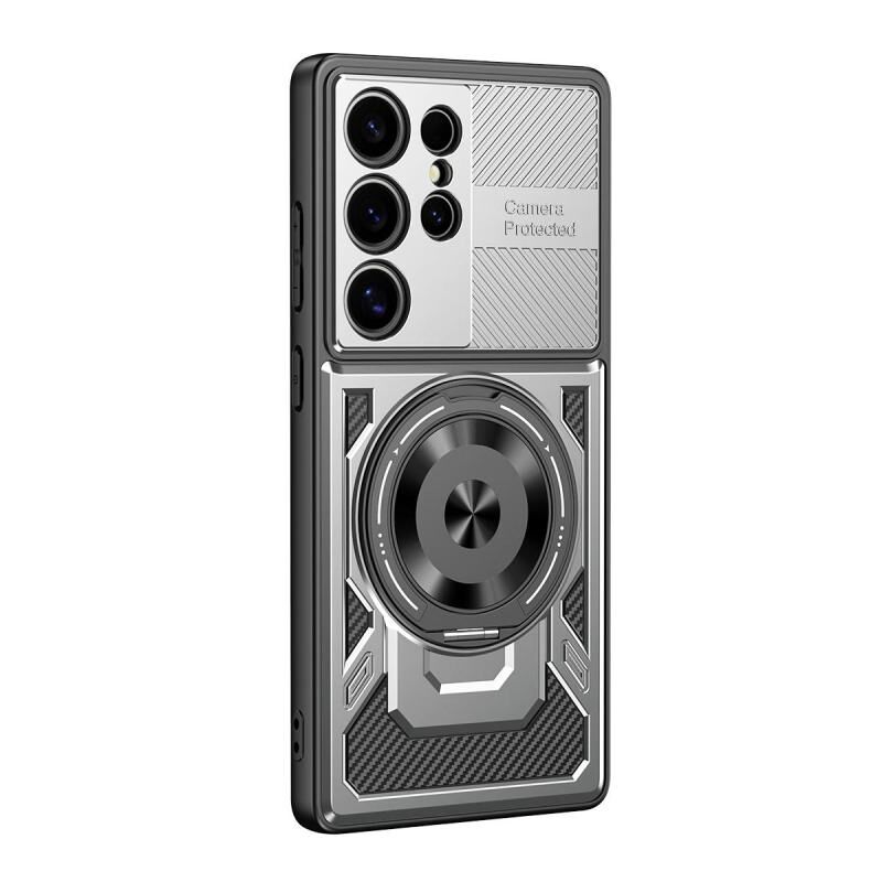 6. Βάση Περιστροφής 360: Η ενσωματωμένη βάση στήριξης σας προσφέρει την ιδανική γωνία θέασης τόσο σε οριζόντιο όσο και σε κάθετο προσανατολισμό. Όταν είναι διπλωμένη, ευθυγραμμίζεται άψογα με την πλάτη της θήκης, διατηρώντας ένα λεπτό προφίλ για εύκολη τοποθέτηση στην τσέπη.