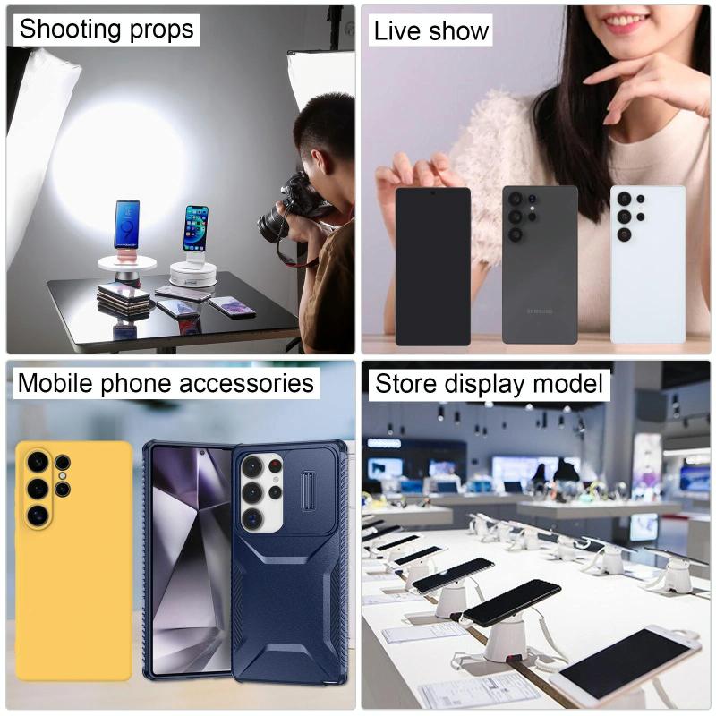 3. Display Use: Cell phone store / phone accessories store display use, thanks to its metallic frame and identical weight as original phone, it is perfect to try out phone cases or other accessories.