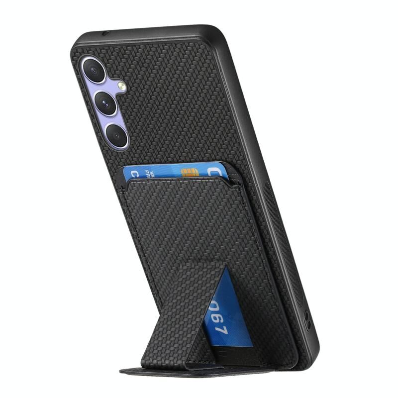 Για Samsung Galaxy S25 Ultra 5G Carbon Fiber Card τσάντα τσάντα Fold Stand τηλέφωνο υπόθεση (μαύρο)