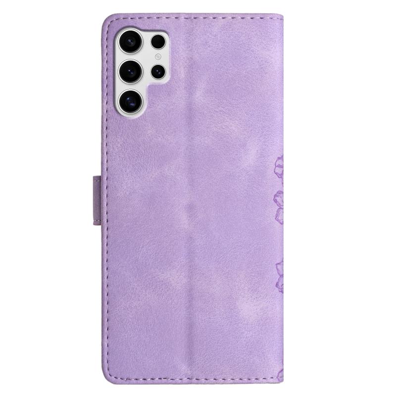 For Samsung Galaxy S25 Ultra 5G Cherry Blossom Butterfly Skin Feel Embossed PU Phone Case(Purple)