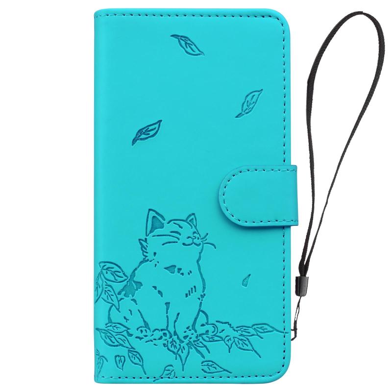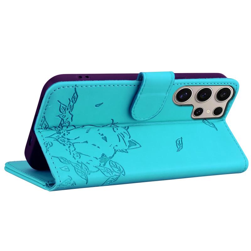 For Samsung Galaxy S25 Ultra 5G Cute Cat Embossed Leather Phone Case(Lake Blue)