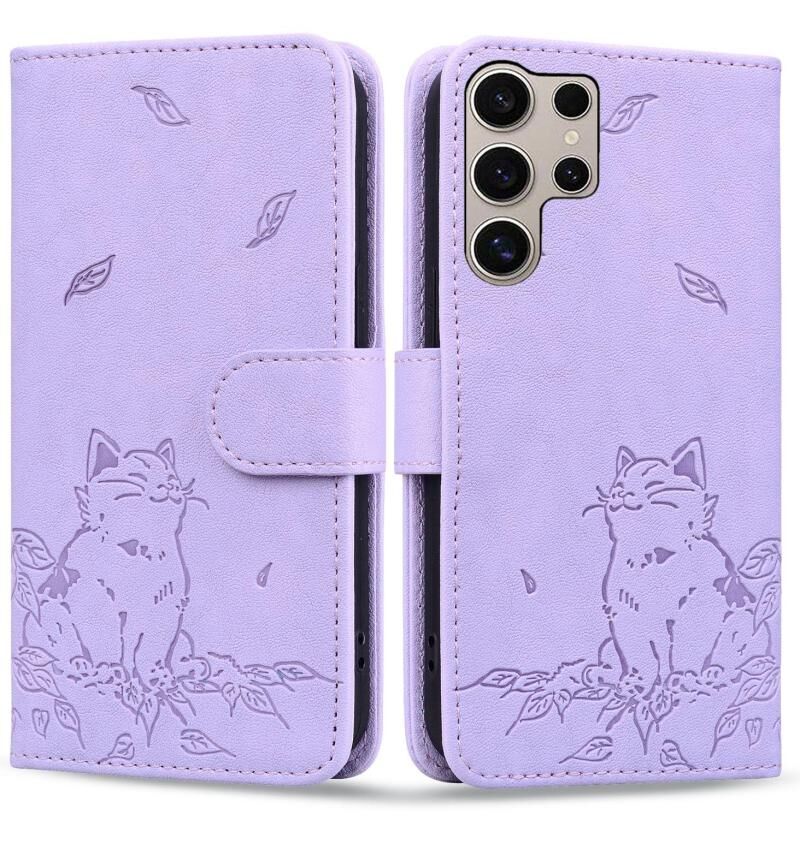 Θήκη τηλεφώνου δερμάτινη με ανάγλυφο σχέδιο χαριτωμένης γάτας για Samsung Galaxy S25 Ultra 5G (Γαλάζιο του ουρανού)