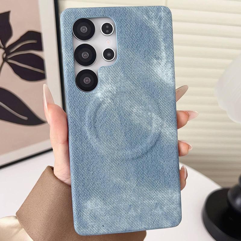 For Samsung Galaxy S25 Ultra 5G Denim MagSafe Magnetic PC + PU Phone Case(Light Blue)