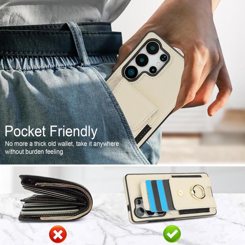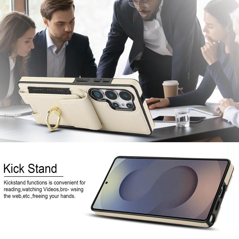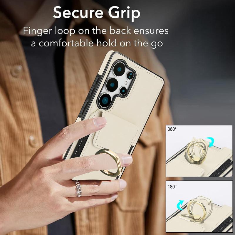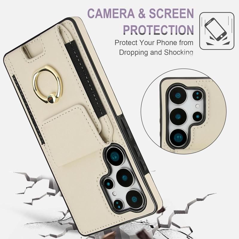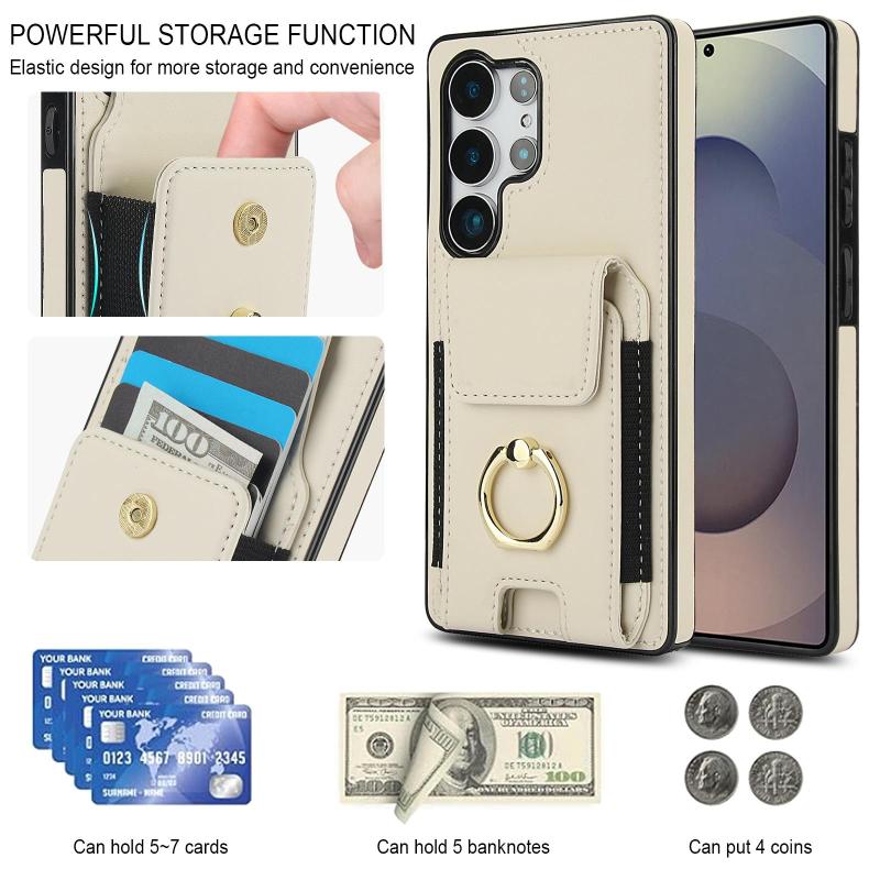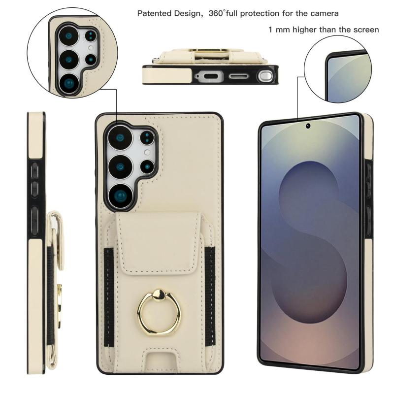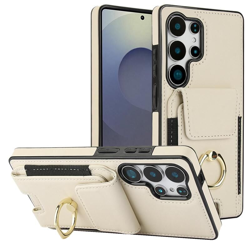 Για Samsung Galaxy S25 Ultra 5G Θήκη με Ελαστική Κάρτα & Δαχτυλίδι Στήριξης (Λευκό)