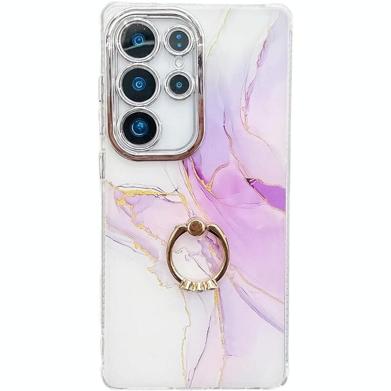 Θήκη τηλεφώνου με δακτύλιο για Samsung Galaxy S25 Ultra 5G, με ηλεκτρολυτική μαρμάρινη υφή (Χρυσό-Λευκό S1)