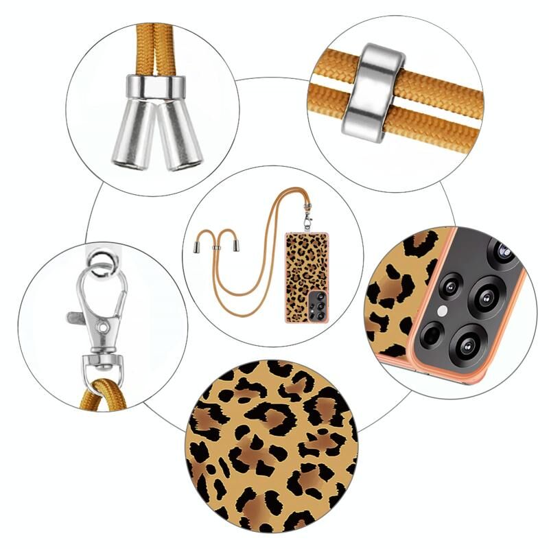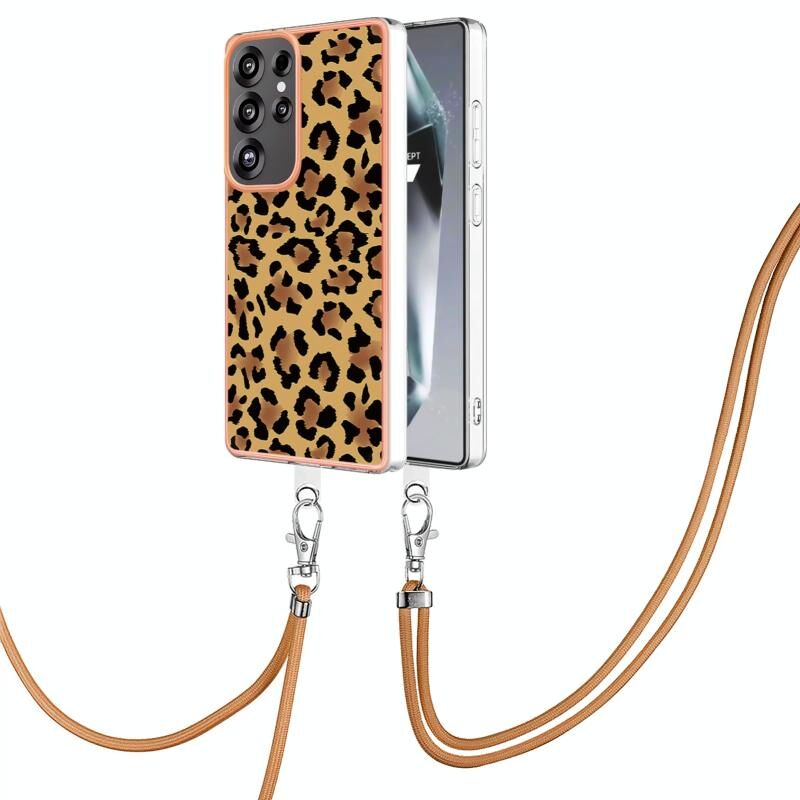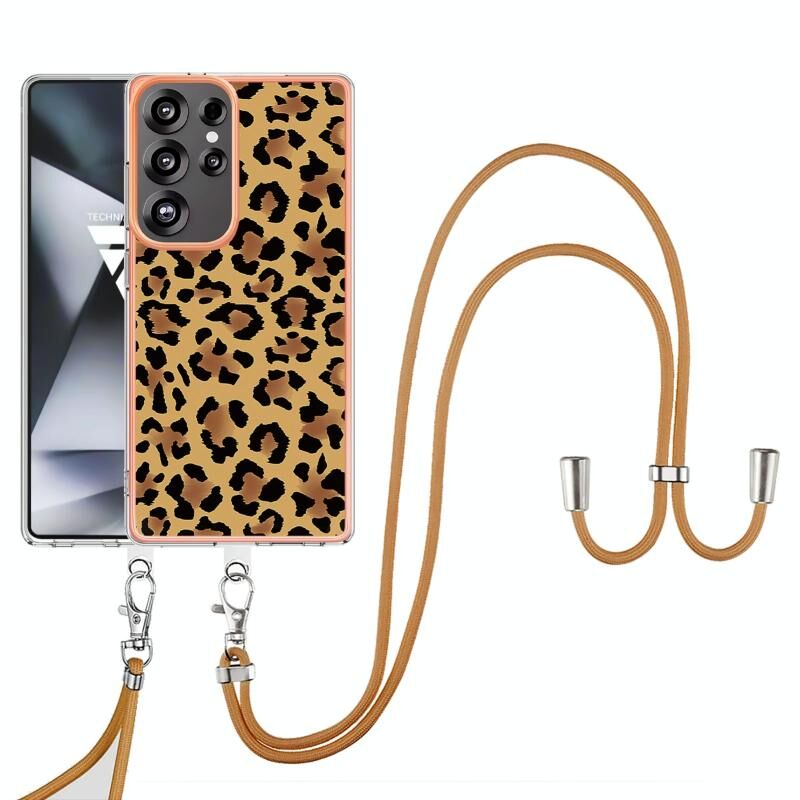 Θήκη τηλεφώνου με κορδόνι για Samsung Galaxy S25 Ultra 5G, με ηλεκτρολυτική επιμετάλλωση και διπλής όψης IMD (εκτύπωση εντός καλουπιού) (εκτύπωση λεοπάρδαλης).