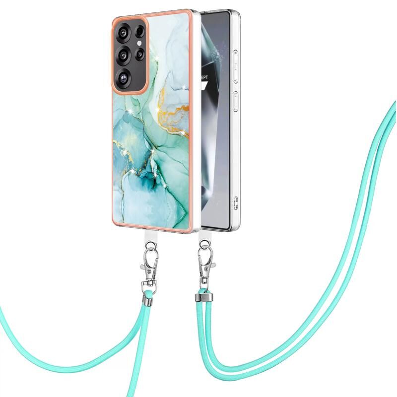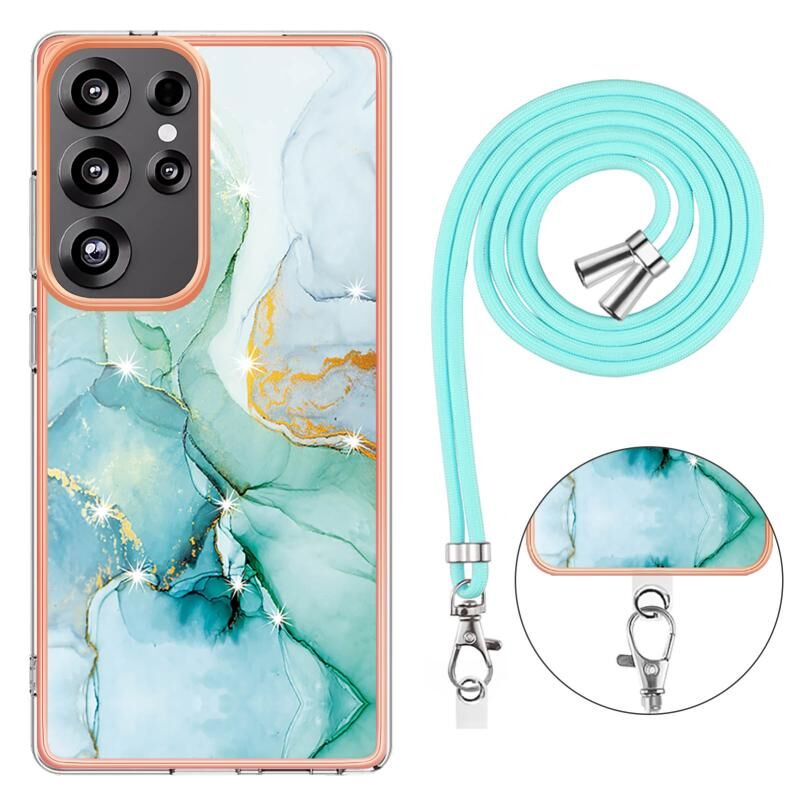 Θήκη τηλεφώνου για Samsung Galaxy S25 Ultra 5G με ηλεκτρολυτική επικάλυψη, σχέδιο μάρμαρου, διπλής όψης IMD με κορδόνι (Μωβ 001)