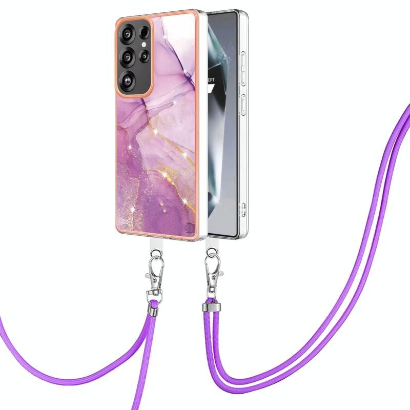 Θήκη τηλεφώνου για Samsung Galaxy S25 Ultra 5G με ηλεκτρολυτική επικάλυψη, σχέδιο μάρμαρου, διπλής όψης IMD με κορδόνι (Μωβ 001)