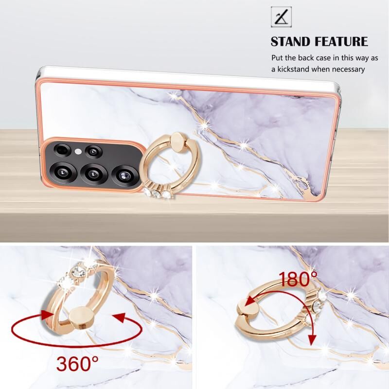 Θήκη κινητού τηλεφώνου Samsung Galaxy S25 Ultra 5G με Ηλεκτρολυτική επικάλυψη, σχέδιο Μάρμαρου IMD, από TPU με Δακτύλιο Στήριξης (Λευκό 006)