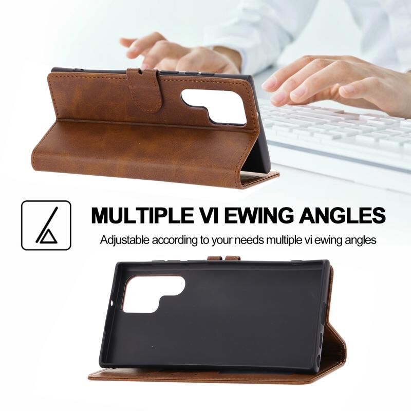 Θήκη τηλεφώνου Samsung Galaxy S25 Ultra 5G, δερμάτινη, με ανάγλυφο σχέδιο χαρούμενης γάτας (Καφέ)