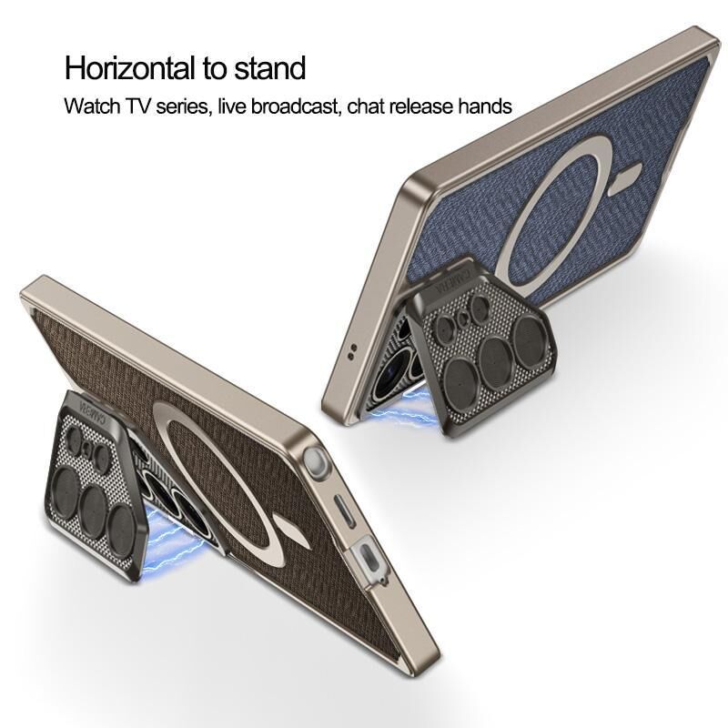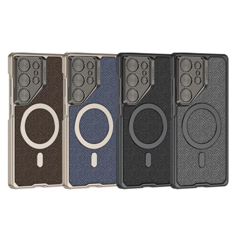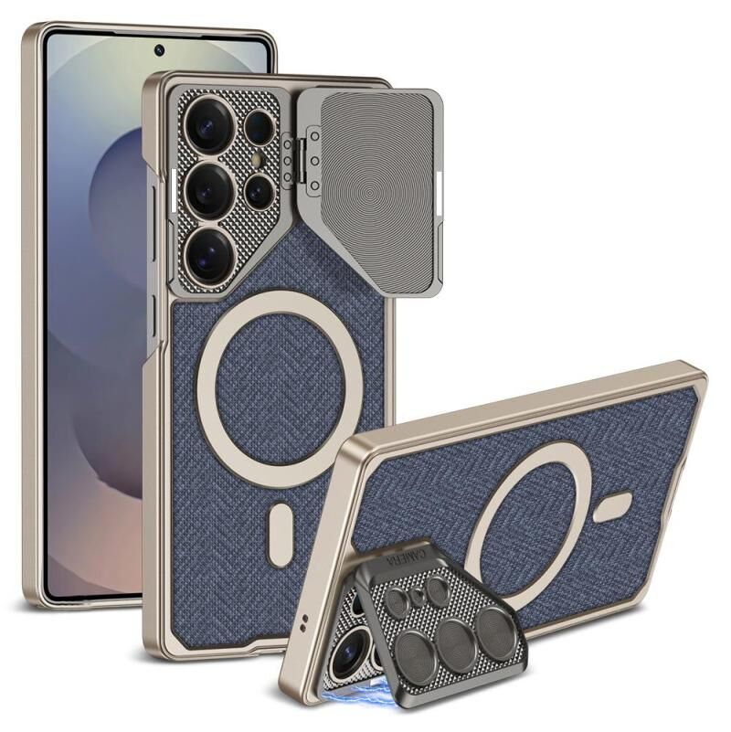 Θήκη κινητού τηλεφώνου Samsung Galaxy S25 Ultra 5G GKK Metal Paint Leather Nylon Fabric Lens Holder MagSafe (Γκρι) (Μπλε)