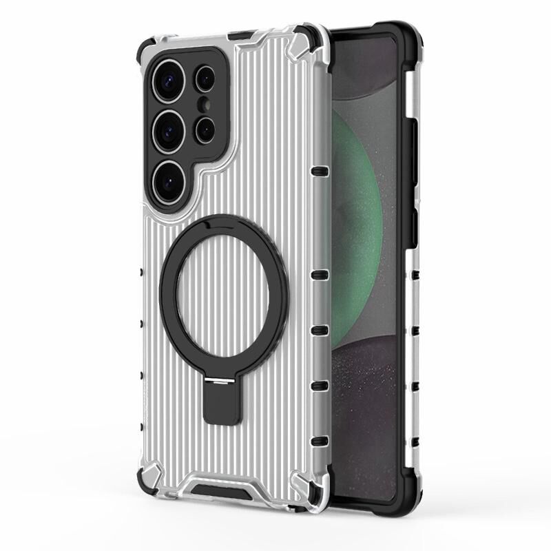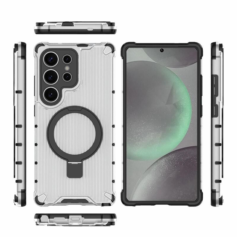 Για Samsung Galaxy S25 Ultra 5G σχάρα 360 βαθμού περιστρεφόμενη κάτοχος Shockproof τηλέφωνο υπόθεση (διαφανές)