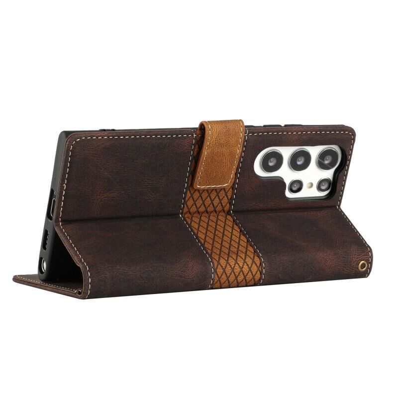 Για Samsung Galaxy S25 Ultra 5G Grid Stitching δερμάτινη θήκη τηλεφώνου με κορδόνι (καφέ)
