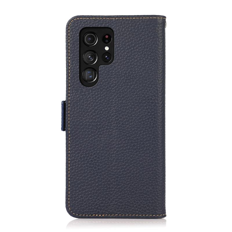 Θήκη κινητού τηλεφώνου Samsung Galaxy S25 Ultra 5G KHAZNEH με μαγνητικό κλείσιμο, από γνήσιο δέρμα Litchi και προστασία RFID (Μπλε)