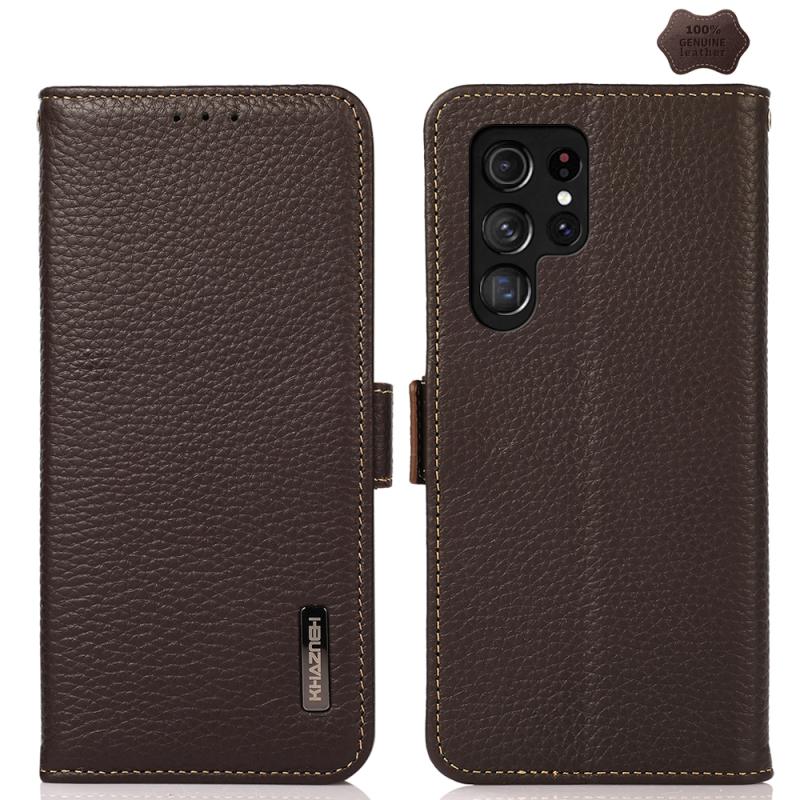 Θήκη τηλεφώνου Samsung Galaxy S25 Ultra 5G KHAZNEH με μαγνητικό κλείσιμο, από γνήσιο δέρμα Litchi και προστασία RFID (Μαύρο)