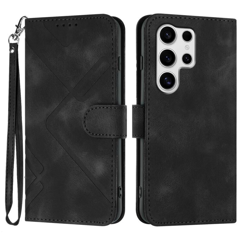 Για Samsung Galaxy S25 Ultra 5G Γραμμή μοτίβο δέρμα αίσθηση δέρμα τηλέφωνο υπόθεση (μαύρο)
