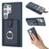 For Samsung Galaxy S25 Ultra 5G Litchi Texture Drawing Card Bag Ring Holder Phone Case(Blue)