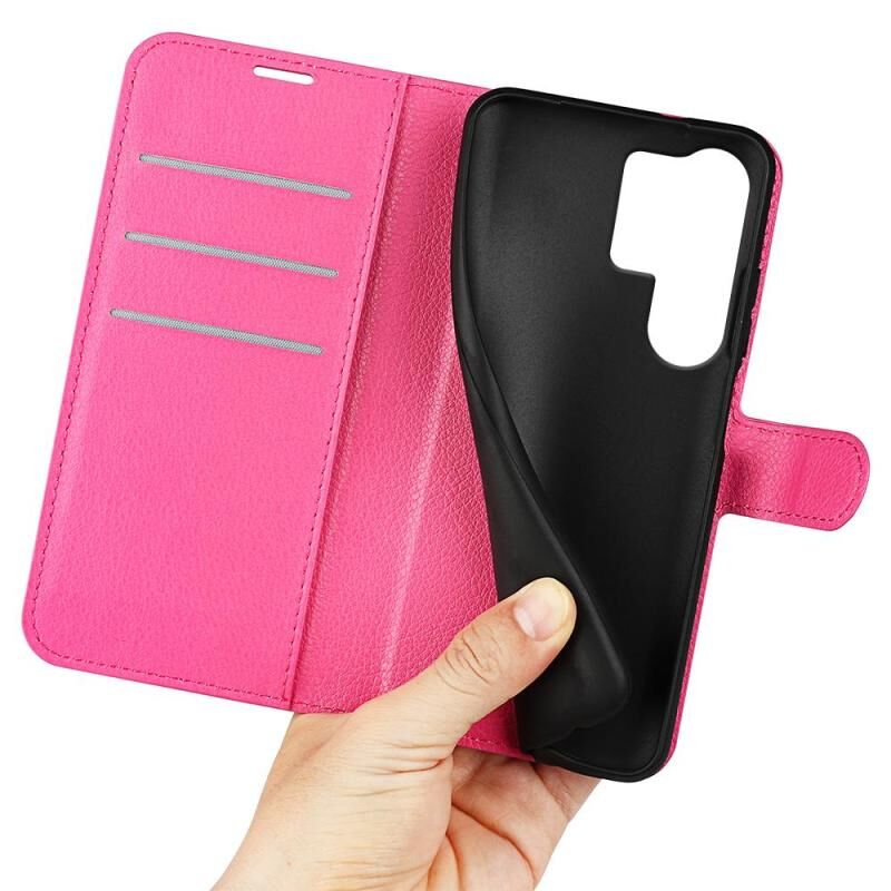 Θήκη τηλεφώνου Samsung Galaxy S25 Ultra 5G από δέρμα με οριζόντιο άνοιγμα και υφή λυτσί, με βάση στήριξης (Κόκκινο του Ρόδου)