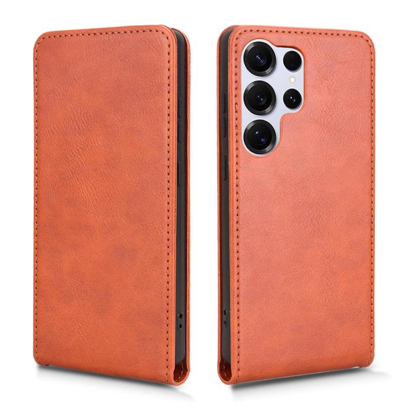 For Samsung Galaxy S25 Ultra 5G Magnetic Vertical Flip Leather Phone Case(Brown)