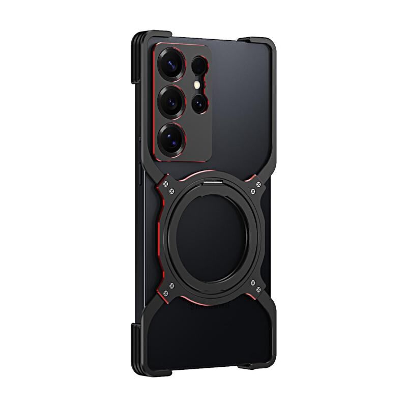 For Samsung Galaxy S25 Ultra 5G Mechanical Arm Borderless MagSafe Holder Metal Phone Case(Black Red)
